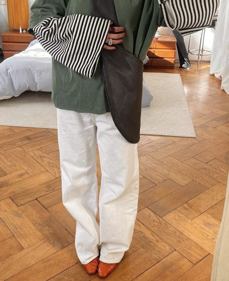 Unos straight en color lavado, ni muy claro ni muy oscuro, como estos. Un barrel fit de tiro alto para dibujar la silueta de manera perfecta, estos me encantan y puestos son todavía más recomendables.